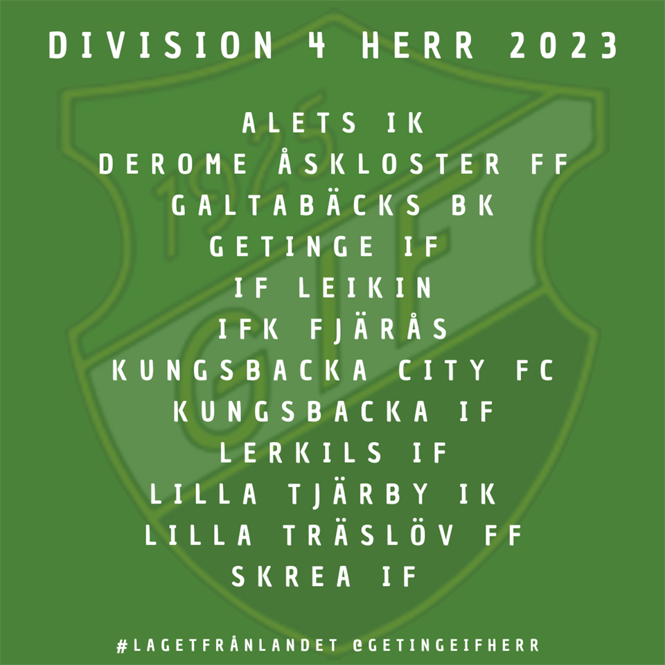 Våra seriemotståndare under 2023. Det är nu 100 dagar kvar till premiärmatchen då favorittippade IF Leikin kommer på besök. Sätt en bock i kalendern på fredagen den 14/4 klockan 18:45 och kom och stötta laget. #lagetfrånlandet #getingeif #getinge #fotboll #getingeifherr @getingeifherr Herrlaget 4 jan 2023 0kommentarer